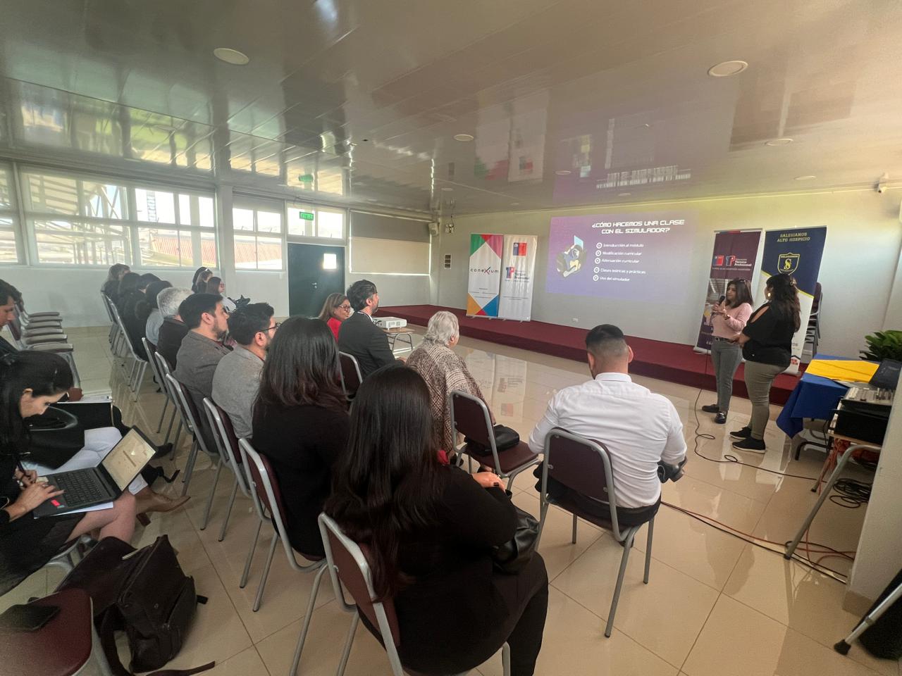 El Colegio Salesiano Santo Domingo Savio presentó su experiencia exitosa titulada “Optimización de Almacenamiento: Estrategias Eficientes con el Simulador de Grúa Horquilla”. Los asistentes experimentaron en el sistema de realidad virtual en el cual los estudiantes adquieren competencias ligadas al manejo de la grúa horquilla y procedimientos dentro de galpones de almacenamiento logístico, explorar el patio de entrenamiento y conocer el sistema de pañol. Esta iniciativa demuestra cómo la tecnología y la innovación pueden transformar la logística y mejorar la eficiencia en el manejo de materiales.